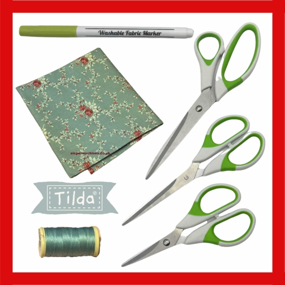 Start your creative journey with our sewing starter kit, perfect for all sewers who need a few additional items to get them started. This easy-to-use kit includes 3 different sized scissors, a washable fabric marker for simple pattern marking, Coats cotton reliable thread, and a premium, genuine Tilda fat quarter, known for it’s beautiful designs and soft, high-quality cotton.