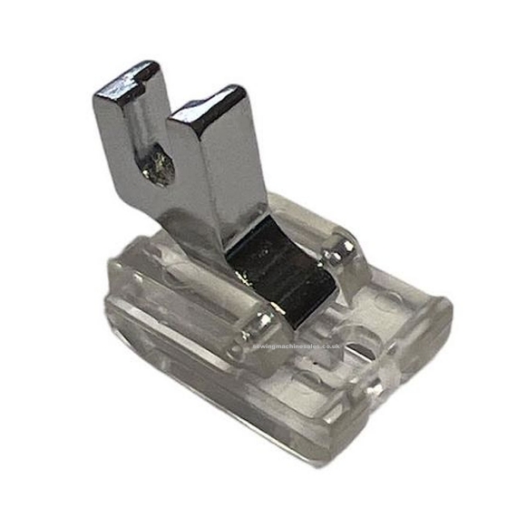 This snap on Singer Invisible zipper foot provides an invisible closure on skirts, dresses, and other projects. Also known as a concealed zip foot. An invisible or concealed zip foot has grooves underneath it, through which the teeth of the zip slide so that the needle stitches extremely close to the teeth if not under them! This closeness is essential for a perfectly stitched invisible zip.