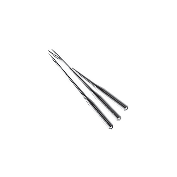 This is a round top special ball point Industrial machine needle type DP x 5, 135 x 5,135 x 7, 134R, 1955 and available is sizes 80 to heavier 90 to stitch nylon and polyester fabrics.